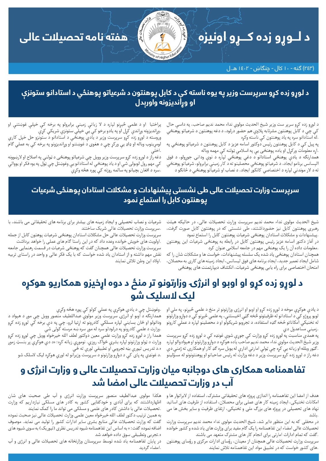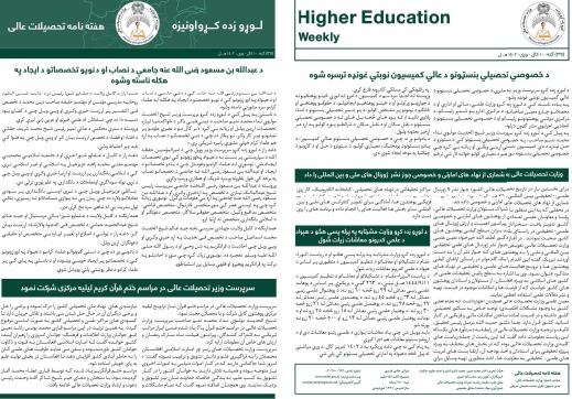 وزارت تحصیلات عالی به تاریخ 15 مارچ 2019 تفاهمنامه را با وزارت انکشاف منابع بشری