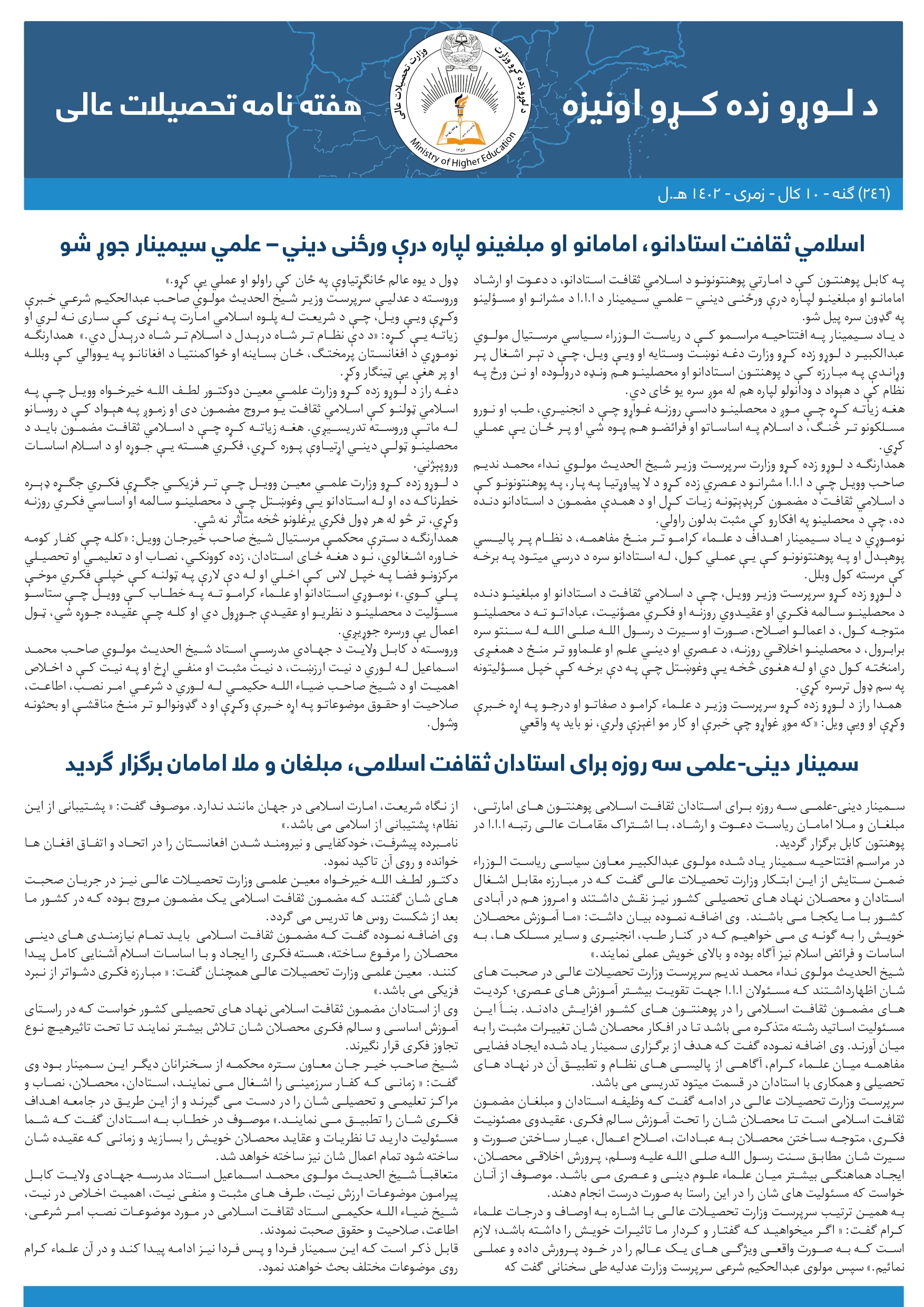 به تمام علمای کرام ولایتهای غور، دایکندی و بدخشان که در امتحانات شش روزه مراحل عالیه و عالمیه ماه شوال سال ۱۴۴۶هـ.ق اشتراک کرده و موفق شدهاند، اطلاع داده میشود که می توانند نتایج . . .