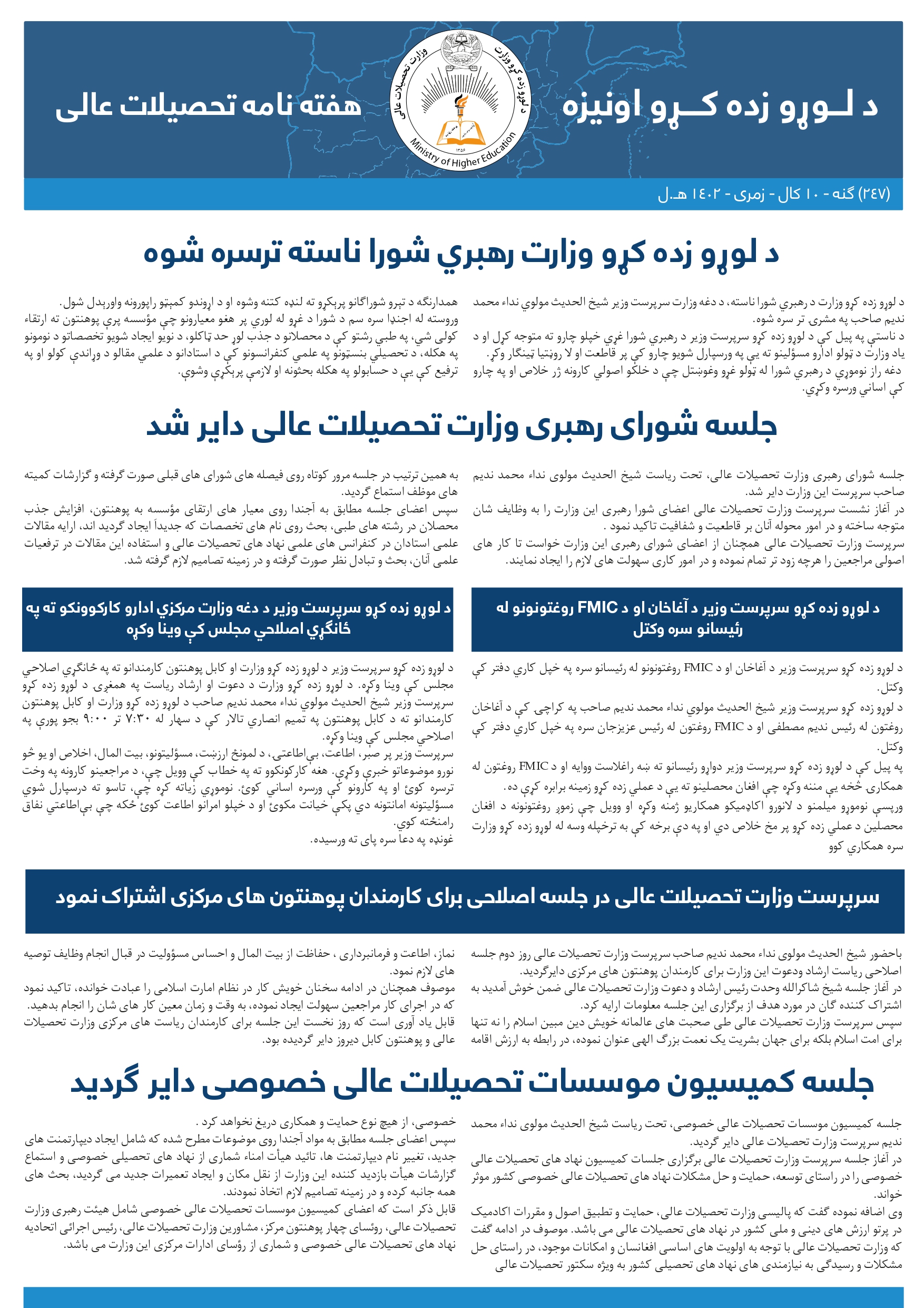وزیر تحصیلات عالی طی سفر رسمی به ولایت بادغیس، به ارزش حدود ۴۴ میلیون افغانی کار شماری از پروژهها را در پوهنتون بادغیس افتتاح و در یک گرد همایی بزرگ نیز سخنرانی کرد.